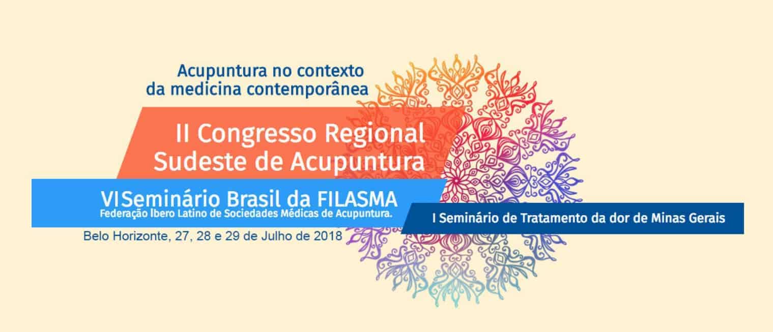 O Colégio Médico Brasileiro de Acupuntura realizará entre os dias 27, 28 e 29 de julho de 2018 o II Congresso Regional Sudeste de Acupuntura, VI Seminário Brasil da FILASMA, em Belo Horizonte – Minas Gerais.